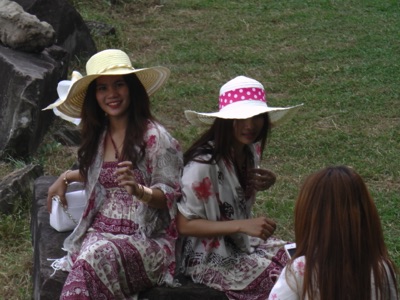 Cambodian girls taking selfies at Angkor wat, Siem Reap, Cambodia
